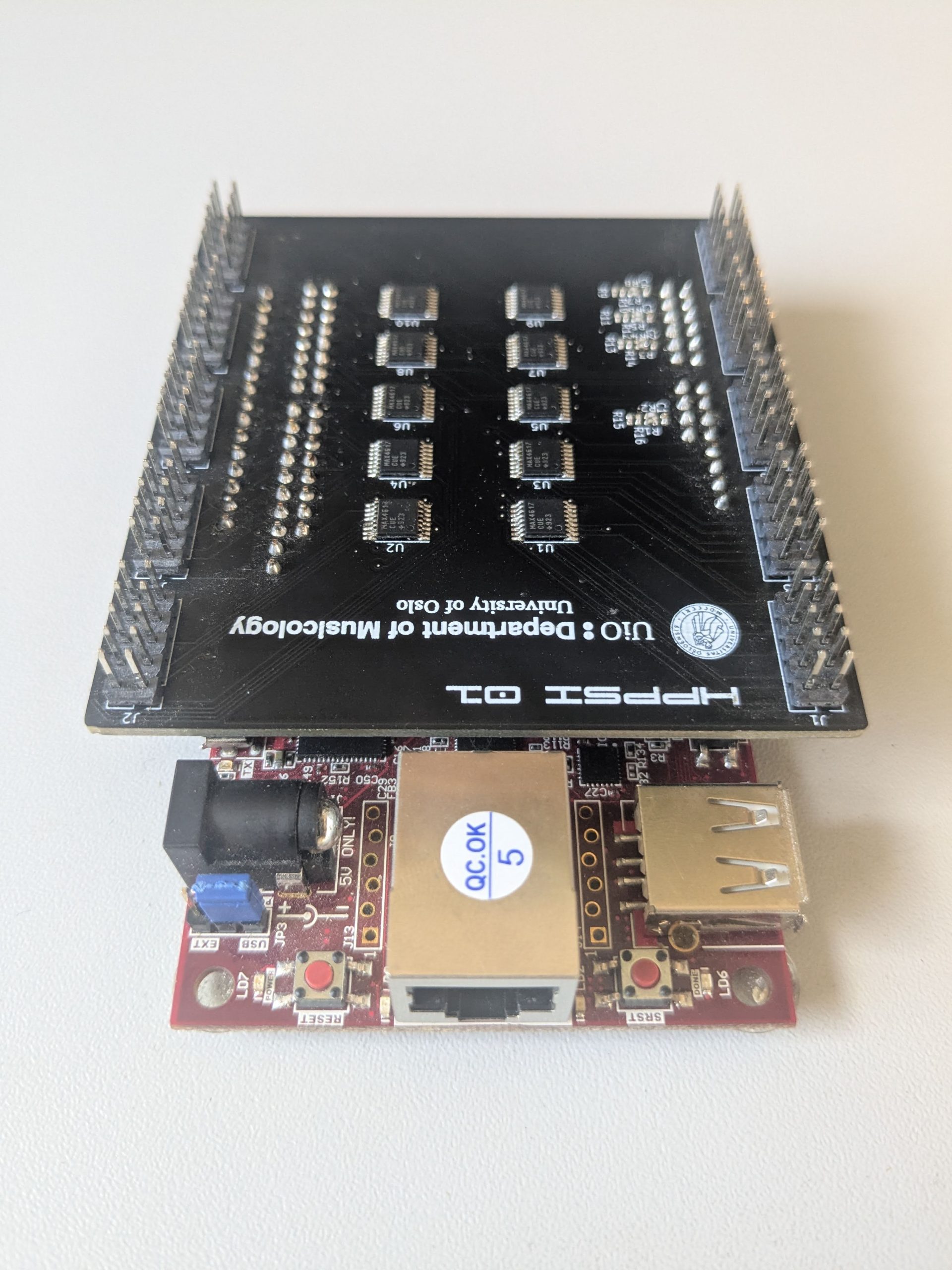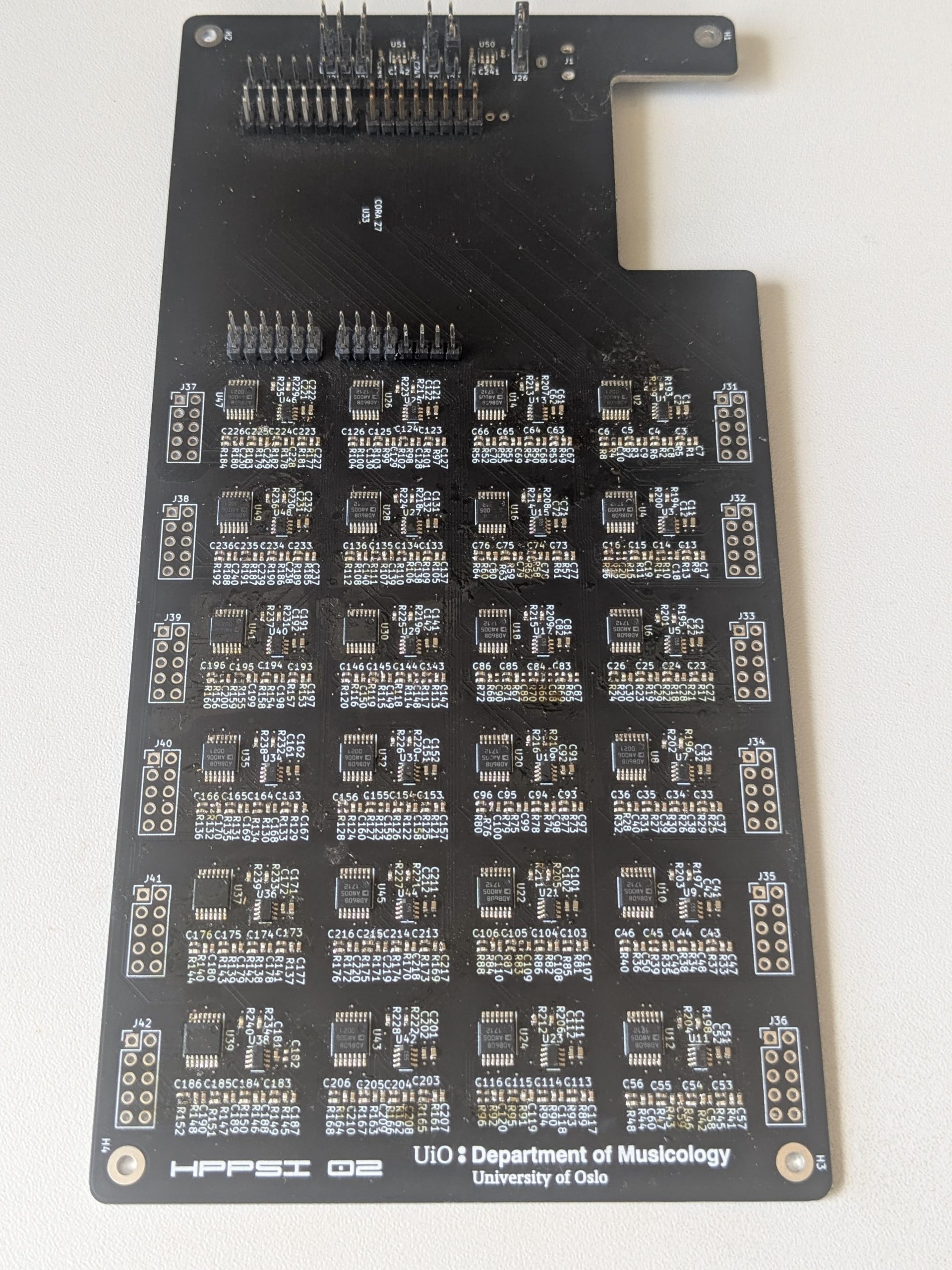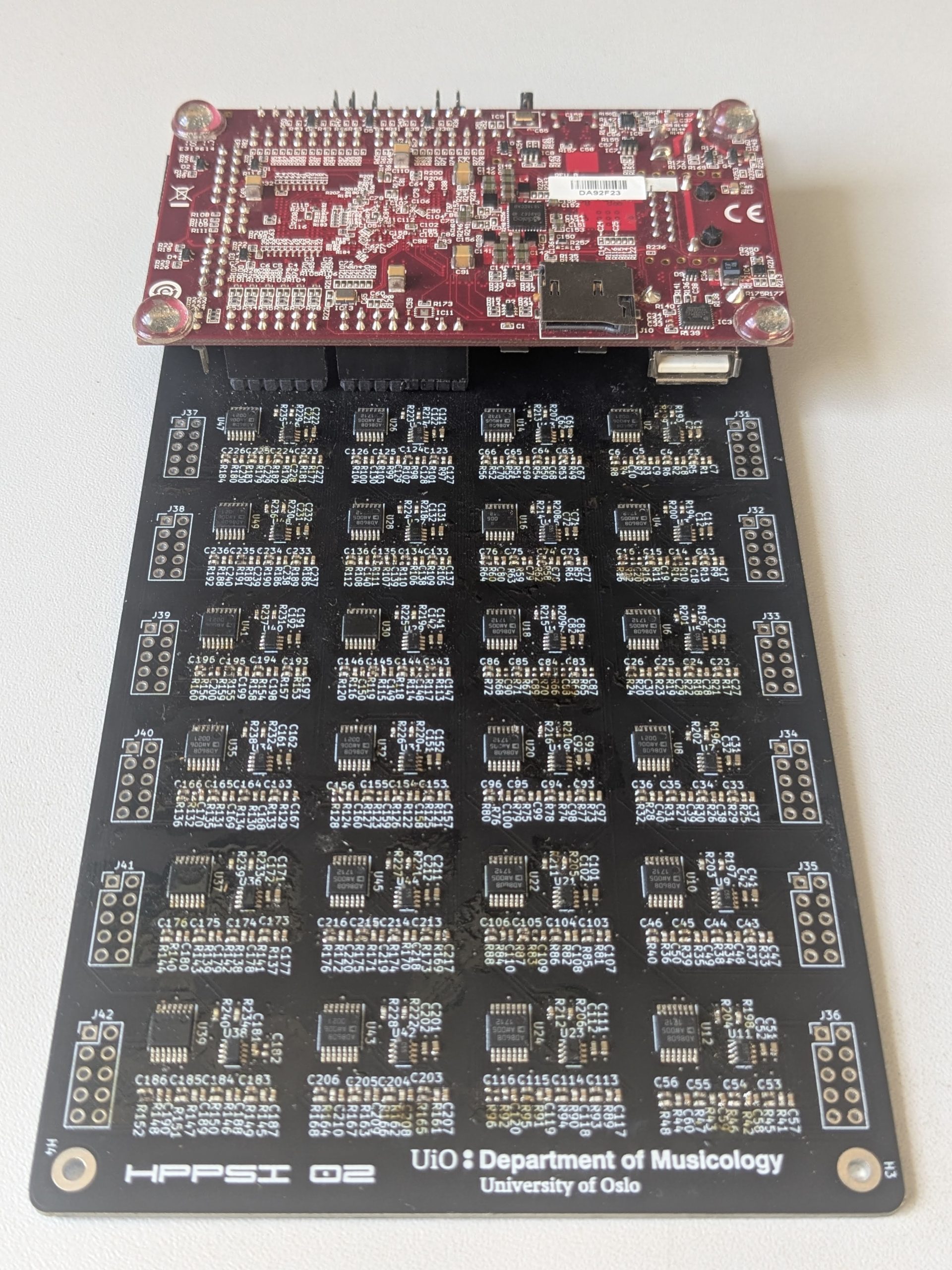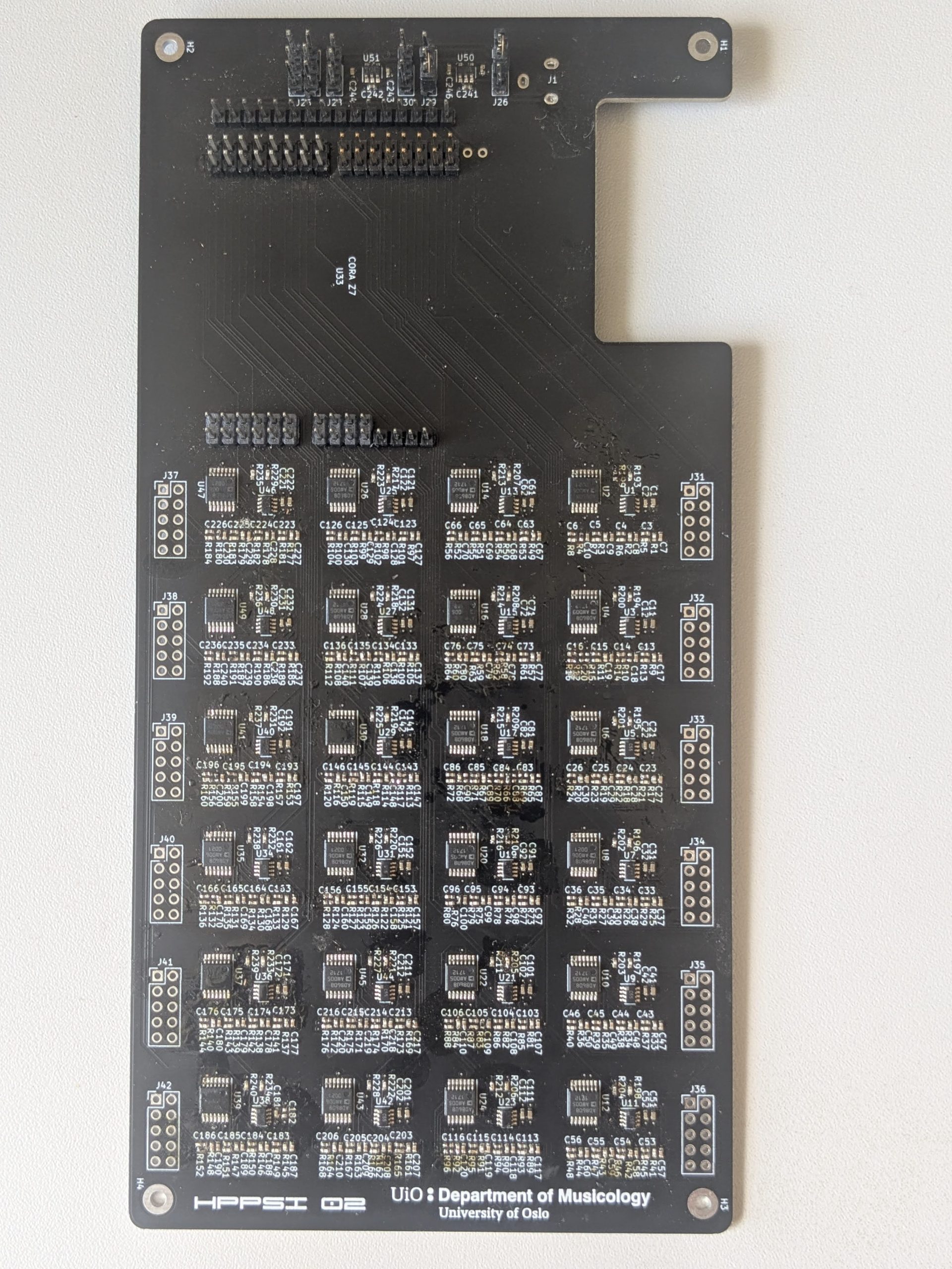 The High-Performance Platform for Sonic Interaction (HPPSI) interface is a solution crafted for the implementation of demanding sonic interactive systems. It is specifically designed to cater to applications with a large array of analog sensors that necessitate swift data acquisition and transmission to computers, ensuring low latency and ample bandwidth. The HPPSI comprises the Cora Z7 ARM/FPGA SoC Development Board, which is paired with a custom-designed expansion board. We have developed two versions of this expansion board: HPPSI 01 and HPPSI 02.